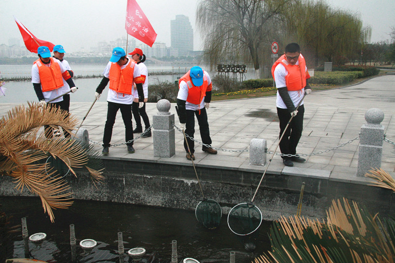,開展了以“五水共治,共同參與”為主題的河面清撈活動,志愿者們自帶工具,來到瓜渚湖北岸公園,打撈音樂噴泉水面及湖邊漂浮物,清理環(huán)湖路邊垃圾,為改善河湖環(huán)境貢獻力量。