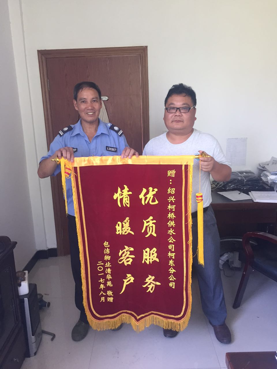 8月25日,平水鎮(zhèn)清華苑包潔物業(yè)專程送來錦旗,感謝柯東分公司提供的優(yōu)質(zhì)服務(wù)。